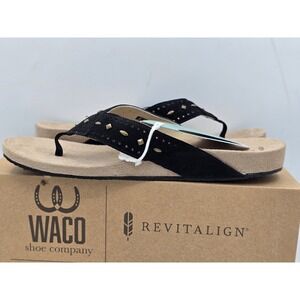 REVITALIGN Women's Kena Studded Flip-Flop Black Suede Women's Sz 9B NWOB Comfy