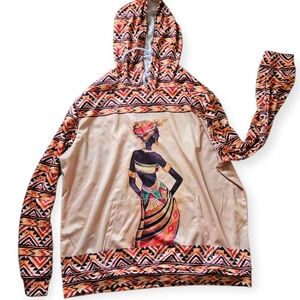 African Inspired Ethnic Tribal Pattern Lightweight Hoodie Unisex 3XL