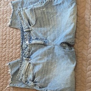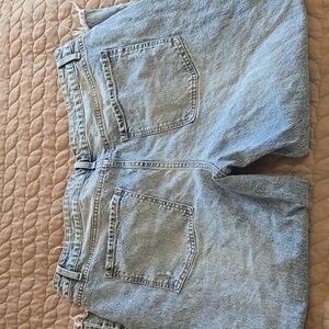 Stylish light blue cropped jeans. Features a frayed hem. Perfect for casual wear.