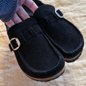 Birkenstock Buckley clog in pristine condition. My daughter did try these on but as seen in pics and video they never left her closet! Please see attached images to verify condition and for details!
