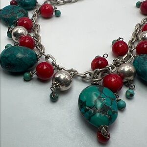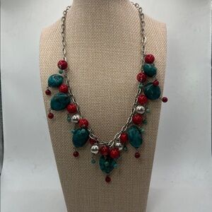 Turquoise and Red Beaded Necklace -2 piece set