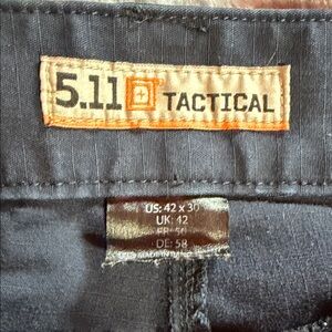 Durable cargo pants by 5.11 Tactical. Features multiple pockets. Ideal for outdoor activities. Sized 42x30