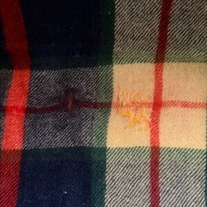 Cozy plaid scarf made from 100% virgin wool. Features a mix of blue, yellow, red, and green colors.fair condition, some holes and worn places, sold as is see photos. 3ft 10 inches in width, 4ft 11 inches in length.