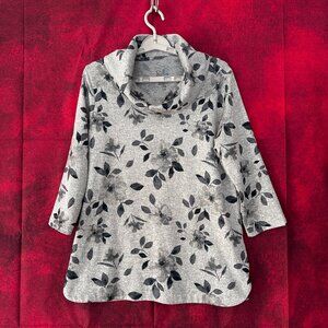 CROFT & BARROW WOMEN'S GRAYFLORAL COWL NECK PULLOVE SWEATER, MEDIUM, 3/4 SLEEVE