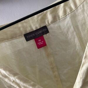 Chic light yellow blouse with button-down front. Features a stylish tie at the hem. Perfect for casual outings.