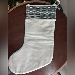 Hearth & Hand White and Green Embroidered Christmas Stocking