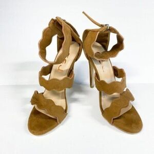 Size 6 FSJ Women Hot Open Toe Strappy Heeled Sandals Suede Dress Shoe for Party