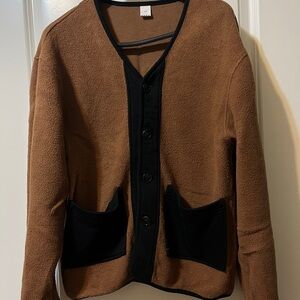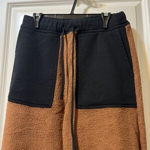Very cozy set. Thick 100% cotton fleece. It was tried on and washed, but not worn. KOTN has changed their styling, therefore this one is no longer made. The extra small size fit me well. I am 5’3”, 120 lbs , normally a size 6.