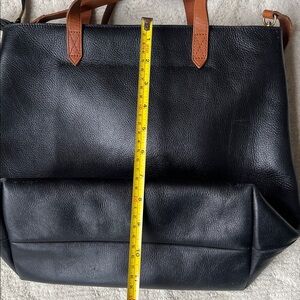 One of the handle straps has a dark mark and the bottom corners of the tote show some wear. Please see all photos and ask as many questions as you would like prior to purchase. Thanks!!