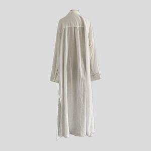 J Crew White Striped Longline Collared 100% Cotton Tunic Top Shirt Neutral L