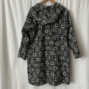 Gudrun Sjoden Abstract Black and White Hooded Trench Coat Jacket **Size M** 🌺🌺