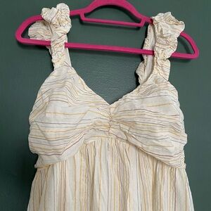 GAP- midi dress sleeveless tiered metallic stripe cotton blend puff strap ruched