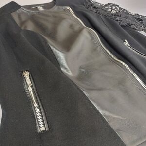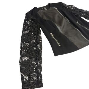 International Concepts Women's Black Faux Leather Long Lace Sleeve Jacket Sz S