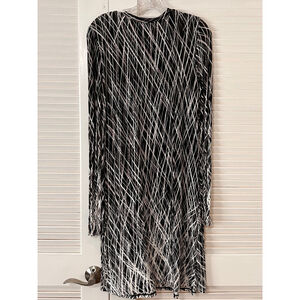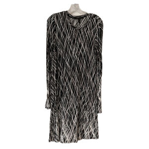 BCBGMAXAZRIA Jeanna Black White Abstract Midi Dress Long Sleeve Size S