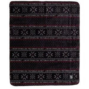 VICTORIA SECRET Black White Fair Isle Sherpa Plush Fleece Blanket 50X60 NEW