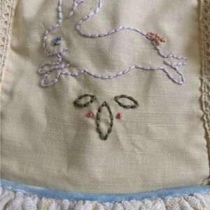 Absolutely beautiful. This dress by love and grow clothing Co is the epitome of a perfect Easter outfit. It features lace details, velvet bow, and an embroidered bunny. This is considered tunic length and not dress length but comes with the most adorable matching shorts (pictured). This dresses worn one time to church on Easter Sunday. It is in perfect like new condition.