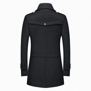 Our men's wool trench coat is meticulously crafted from a high-quality wool and polyester blend, guaranteeing remarkable comfort and enduring strength.