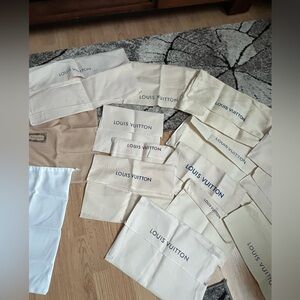 Designer dust bags includes - 6 larger ones, 3 medium sized, and 4 wallet sized flap style covers. Photo shows a Gucci that is NOT included.