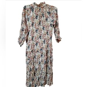 POL Dress Medium Midi Colorful Floral Tiered Lined Ruffle Tie Neck Wrinkle Knit