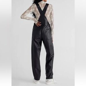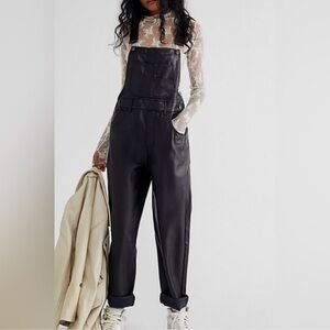 Free People Ziggy Overalls Jumpsuit Slouchy Vegan Leather Black Size S