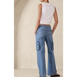 NEW WITH TAGS. Banana Republic Factory Denim Women’s Size 29/8 Regular. High Waisted Blue Barrel Cargo Jeans. Back bottom of jeans have buttons, you can tighten the pants or leave loose.