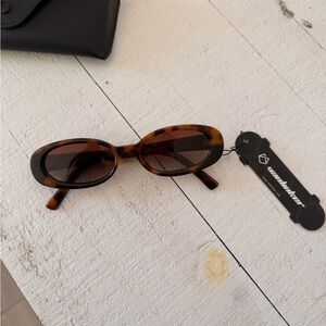 Elegant Gucci sunglasses with sleek gold frames. Dark green lenses for a sophisticated touch.