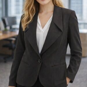 Classic, tailored blazer from luxury brand Lafayette 148. This timeless piece features a structured silhouette with a single-button closure, notched lapel, and clean welt pockets. Perfect for work, business casual, or dressing up everyday outfits.