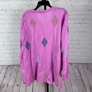 J. Jill top size 4X. Pink button down shirt. Embroidered front and back diamond details. 100% cotton. Good condition, except for a small pull on one diamond (see pic). Smoke free home.