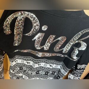 PINK by VS Black and White Crew Neck Sequin Pullover