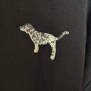 Awesome sequin detailed dog on the front with large sequin PINK logo across the back.