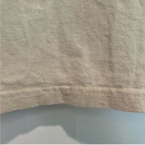 Condition: Great pre-owned condition with natural yellowish tan fade to collar and hem. One thread fray in bottom hem and some cracking in graphic as shown in photos.