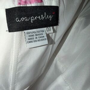 Turn heads with this chic strapless pink floral prom dress, featuring elegant ruffles for a touch of glamour. It is a 00, but we had it let out a tiny bit for comfort.