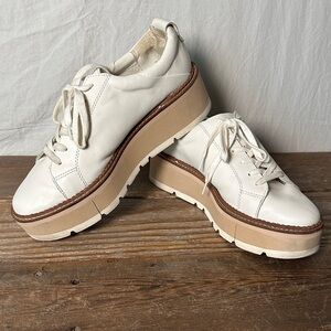 Elevate your look with these Dolce Vita platform sneakers. Cream leather with tan accents. Stylish and comfortable for any occasion.
