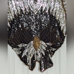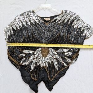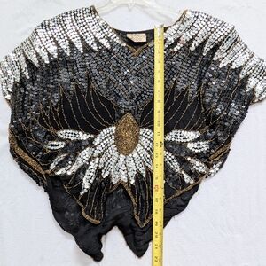- Vintage Women's 100% Silk Sequins & Beaded V-Neck Sleeveless Top/Blouse/Cape