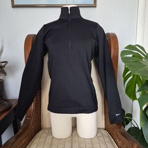 Classic black quarter-zip top. Features Nike logo on sleeve. Comfortable and versatile.