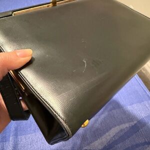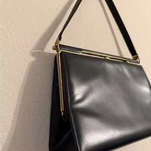 Vintage Sophisticated Black Leather Shoulder Bag Genuine Leather Medium Size