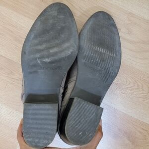 Baretraps Woman’s Georgia Ankle Bootie Taupe Perforated Suede