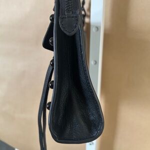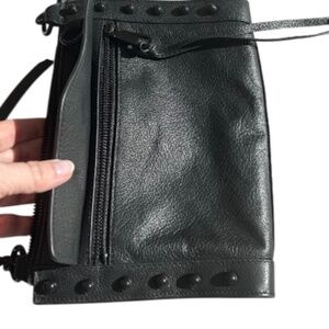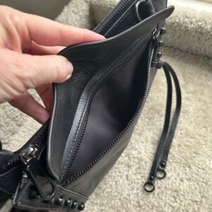 Rebecca Minkoff Leather Shoulder Bag with adjustable chain/leather strap. One exterior snap closure pocket, one exterior zip closure with flap pocket, Zip top closure with one interior zip pocket and 2 slip pockets. This small bag packs serious punch, lots of storage. Can also be a crossbody. Dress it up or dress it down. Design details include, black studs, black hardware and chain on strap. EUC condition, used twice.