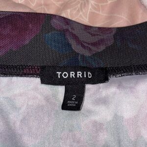 Torrid Plus Size Chic A-line skirt. Size 2X. Worn twice, great condition, gently worn. Skirt with a vibrant floral pattern. Stretchy, elastic fabric in backside waistband, sheer black overlay. Comes from a smoke free home.
