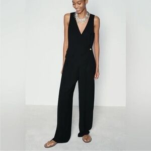 Zara Long Crepe Vest Jumpsuit in black Woman’s Size Large