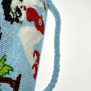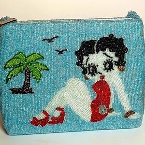 Y2K this is a retired bag. I collected these and never use them, like new. Soft baby blue iridescent all hand beaded all around and bead braided shoulder strap. Made by Betty Boop, king feature syndicate, ink, Fleischer Studios Inc. Hurst holdings Inc. size 8" wide X 6 1/2" tall X 2" deep, strap from top of bag is 9 1/2" up. This is a very beautiful Pre-owned bag, it’s only sat on the shelf and I admired it. I will be listing more. this would make a great gift..
