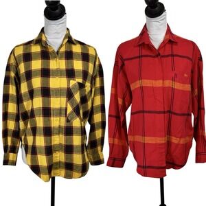 2 Vintage Diane Von Furstenberg Boxy Flannel Plaid Shirts Size S M Buffalo LOT