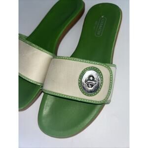 Coach Gabriella Green And Cream Turn Lock Slides. Sz 7.5 Read Description
