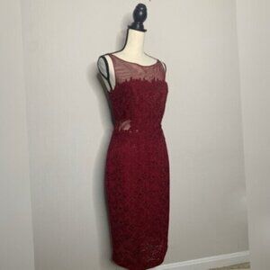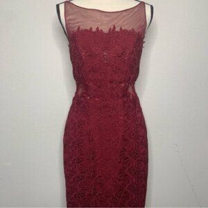 ML Monique Lhuillier Red aromatic Burgundy Illusion Cocktail Dress