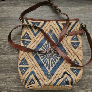 Lucky Brand Maya Jute Hippie Crossbody Bucket Bag Purse