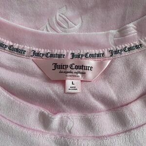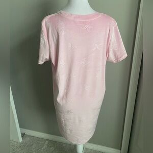 Light pink tee sleep dress with embossed logo pattern. Features rhinestone 'Juicy' on front.