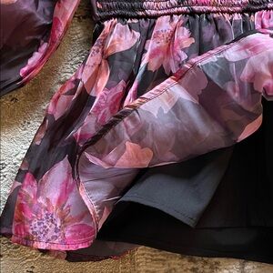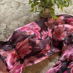This chic floral blouse features elegant puff sleeves and a stunning pink and black design. Perfect for adding a touch of sophistication to any outfit.πΈπ