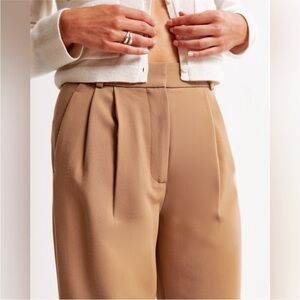 Our signature A&F Sloane Tailored Pant in an everyday menswear fabric, that's perfect for dressing up or down. The Sloane Tailored Pant is an ultra-high rise tailored wide leg pant with figure-flattering pleating details, a functional fly and pockets and a partially elasticated waistband for ultimate adjustability. The intended length hits the bottom of a flat shoe. Please reference our size chart to determine your perfect size and inseam!