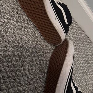 Classic Vans high-tops in black and white. Iconic design with lace-up closure. Perfect for casual wear.