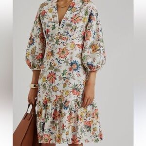 ERDEM White Floral Print Blouson Sleeve Dress – Size US 10 (UK 14) 🌸✨